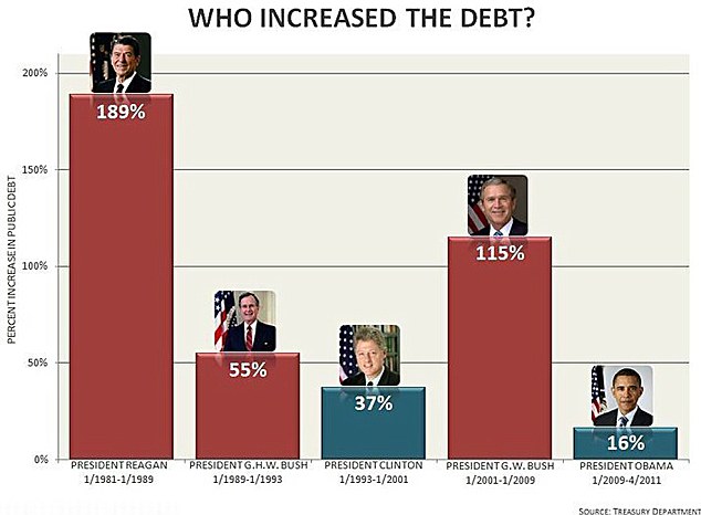 This entry was posted in economy and tagged Barack Obama, Bill Clinton, Debt, George H. W. Bush, George W. Bush, Ronald Reagan. Bookmark the permalink.