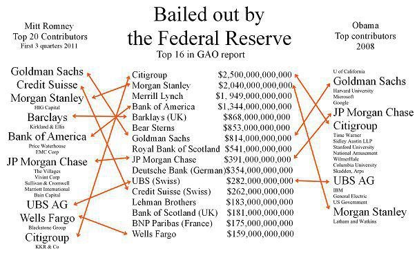 This entry was posted in Barack Obama, Economics, economy, elections, government, politics and tagged Bank of America, Citigroup, Federal Reserve, GAO report, Goldman Sachs, Mitt Romney, Morgan Stanley, top contributors, Wells Fargo. Bookmark the permalink.