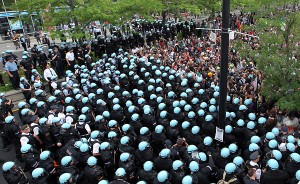 No one would dispute that the gathering of representatives from 50 member states of the North Atlantic Treaty Organization (NATO), including 28 members of the military alliance in Afghanistan, warrants extra security. Indeed, we live in a world today where gunmen walk right up to U.S. members of Congress and shoot them in the head, or pack cars full of explosives on the city street. But it becomes increasingly clear, after 10 years of conventions and “special events” with little or no incident, that the specter of terrorism is being used to generate intimidating and repressive conditions, particularly against peaceful protesters, and proliferating an industry that thrives on domestic conflict and chaos.