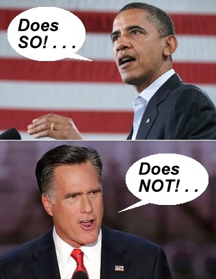Mitt Romney and Barack Obama participate in the first presidential debate at the University of Denver. Photograph: Charlie Neibergall/AP