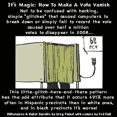 This entry was posted in elections, politics, race and tagged Billionaires and Ballot Bandits, Greg Palast, Ted Rall. Bookmark the permalink.