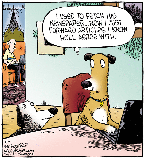 This entry was posted in cartoon, humor, media, political humor, politics and tagged Dave Coverly, dogs, newspapers, Speedbump.com. Bookmark the permalink.