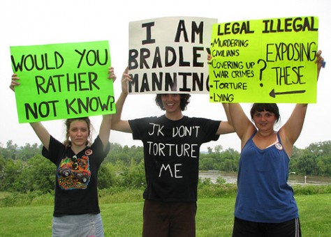 That’s right, activists made a difference. It was after our final protest where dozens were arrested and paramilitary units, helicopters and horses were turned against us that he was put in appropriate pre-trial confinement. Occupy, veterans and other activists have consistently supported Manning. We are in solidarity because we all want transparent and peaceful government.