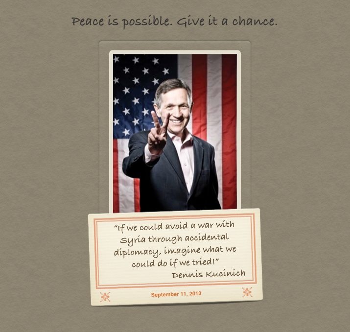 This entry was posted in foreign policy, Quotations, Syria, war and tagged Dennis Kucinich, diplomacy, Peace is Possible. Bookmark the permalink.