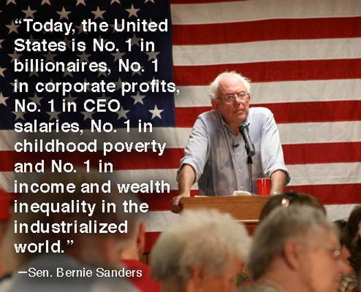Well, Bernie is right, but it should come as no surprise because the USA has had the largest number of the richest people in the world since about 1880 and the largest number of ultra high paid CEO’s during the same time period. The only new thing is not new, but only a repeat. That is the extreme wealth inequality. The USA is about the same as it was for ten years of the Great Depression and for about twenty years of the original Depression from which “Depression” got its name.