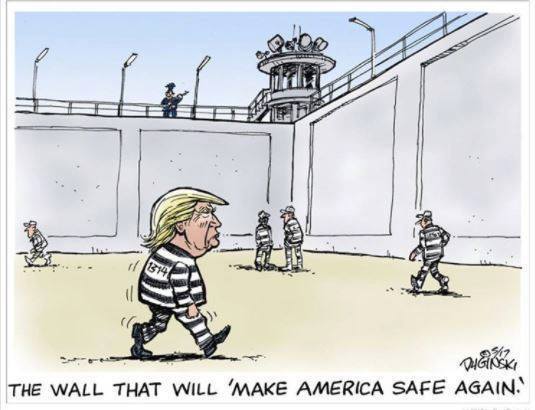 Anybody who’s name isn’t Donald Trump would get decades behind bars if convicted of all the present and future crimes the 45th President is accused of. At least that would be true if “no man is above the law” were our standard. But a lot of people think he should get off with a slap on the wrist, and no jail time, because he is a “former president.” The last time I looked “former president” is not considered a king, a God, a dictator, or above the law. Let Trump face the appropriate penalties, like any other American citizen. If the crimes call for a prison sentence, then “lock him up!”