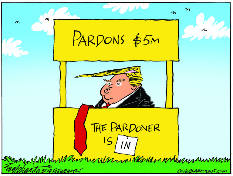 When it comes to pardons, presidents are able to use unlimited power to give pardons to anyone the president wants to, even to those who have been declared guilty in fair jury trials, to those who have given that president huge financial donations, and even to those who attack outnumbered peace officers during illegal assaults on our nation’s capital. Could we ever have a president who would abuse this kind of power? We do now!–TBPR Editor